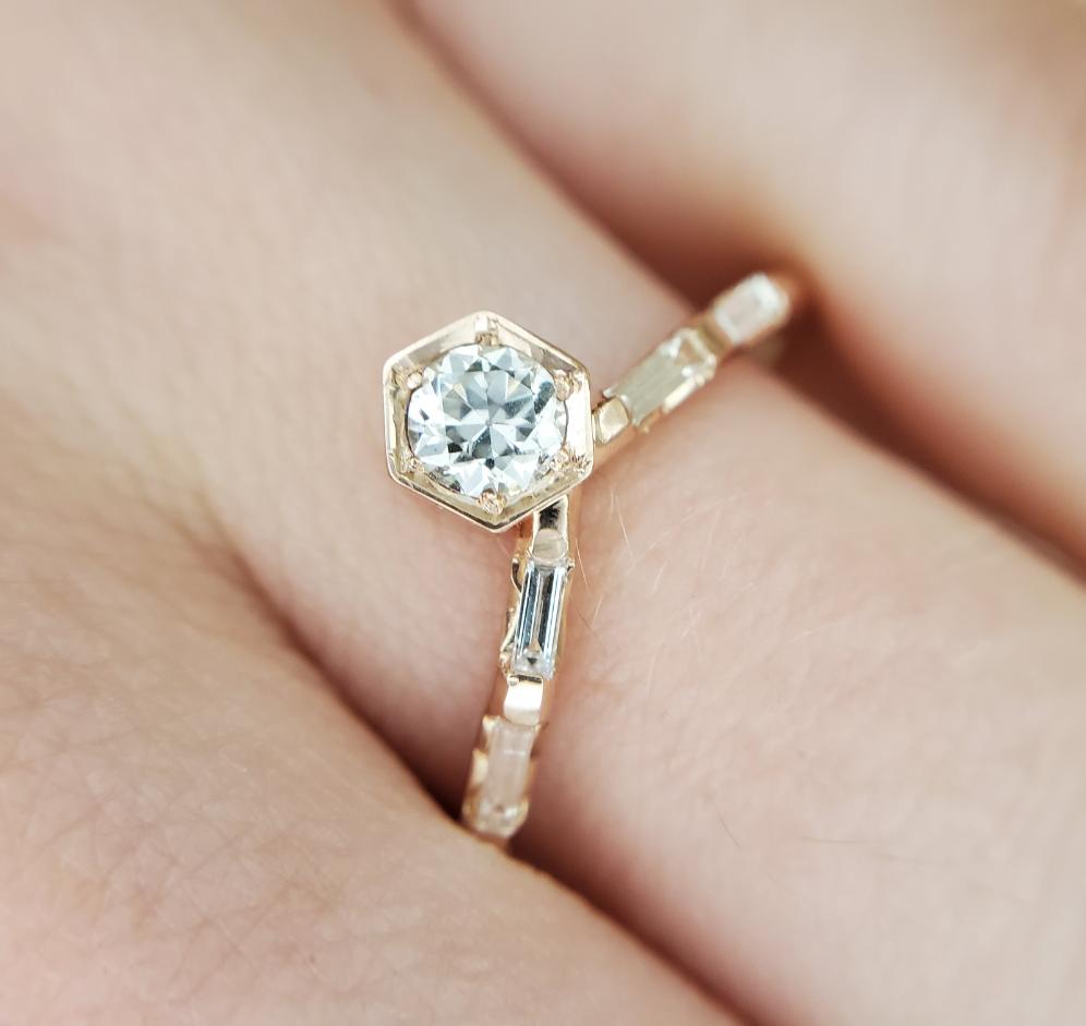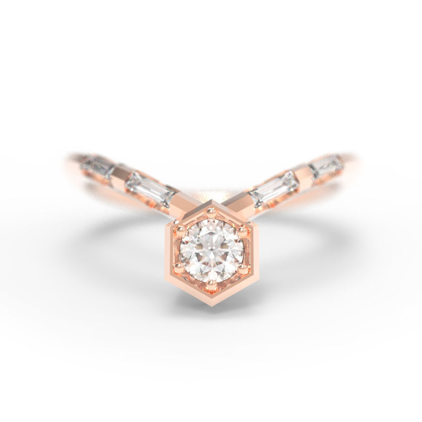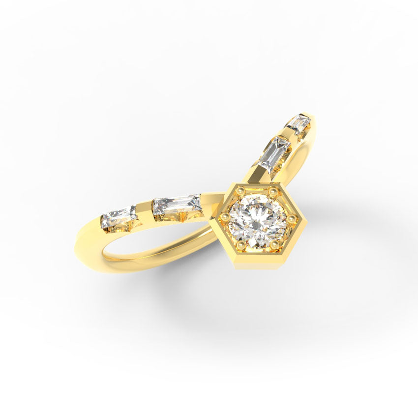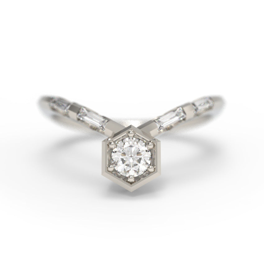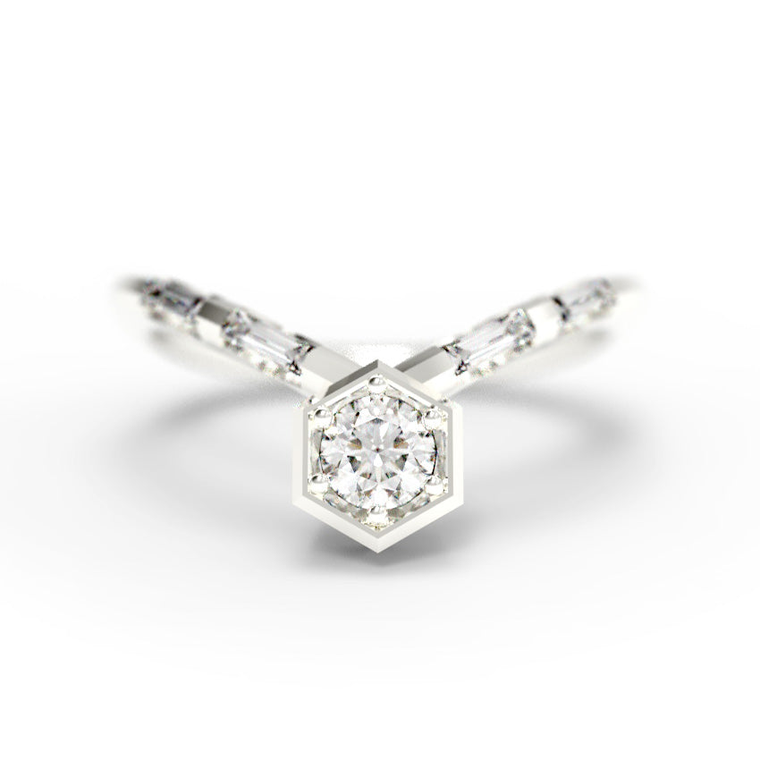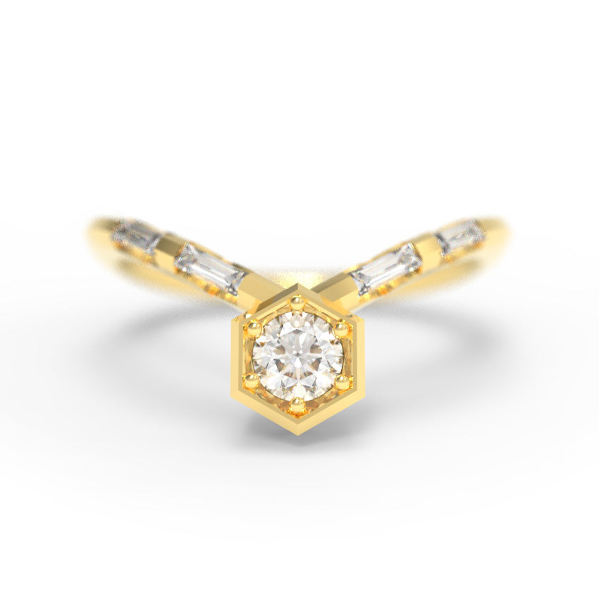 "Nouveau Art Deco" - 0.35ct Hexagon Chevron Ring